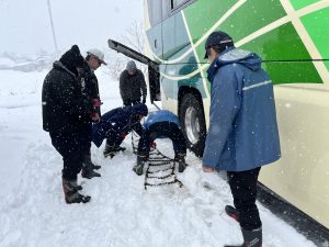 発進時の注意やチェーンの装着に関する研修を行いました。